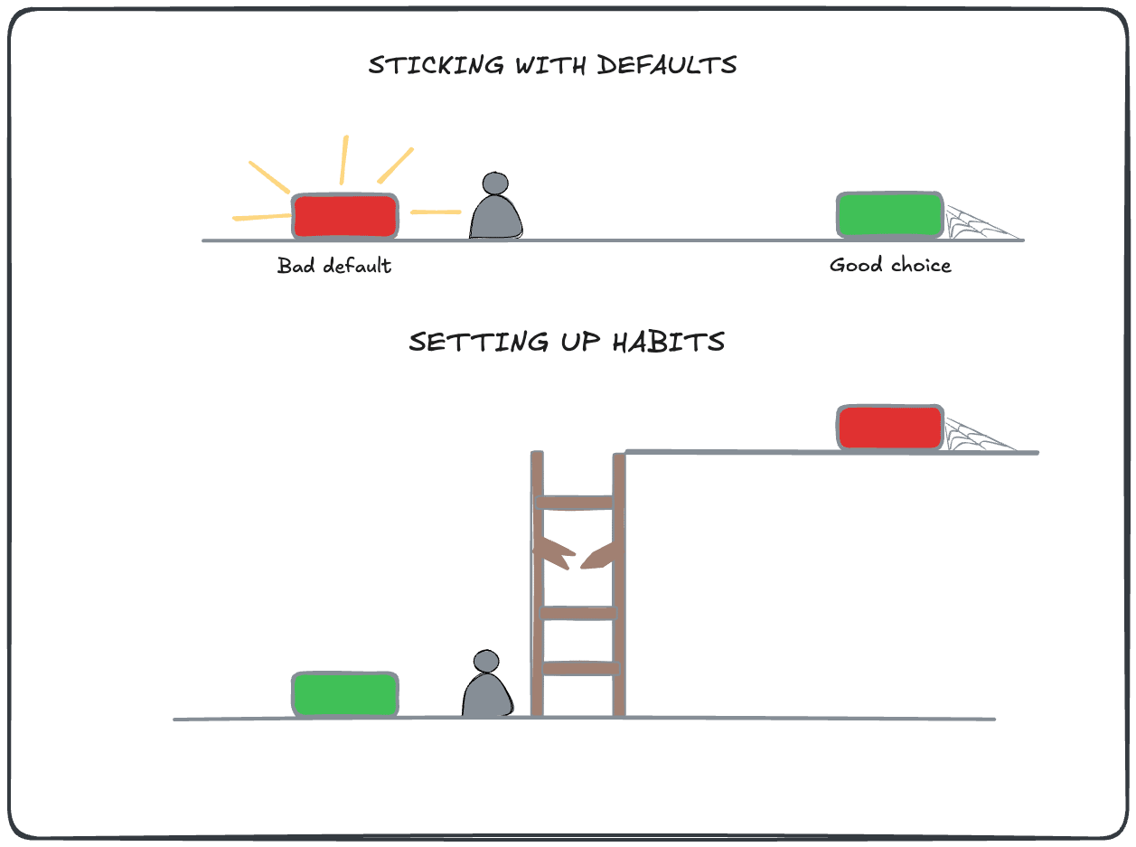 If you’ve read “Atomic Habits”, the next part will sound familiar. If you haven’t, I highly recommend it, but here is the short version. To build a habit, make it obvious, attractive, easy, and satisfying. To break a bad one, do the opposite: make it invisible, unattractive, difficult, and unsatisfying.